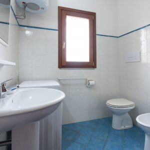 Bagno con box doccia, WC, bidet, lavabo con specchiera, lavatrice. La casa è dotata di parcheggio.